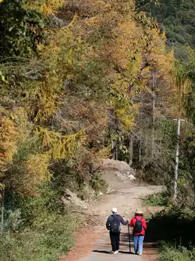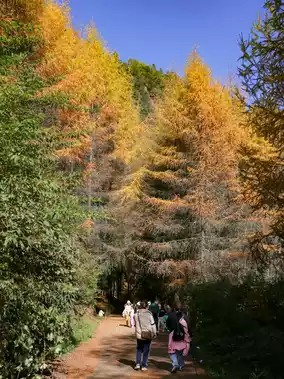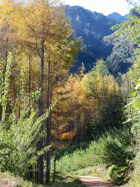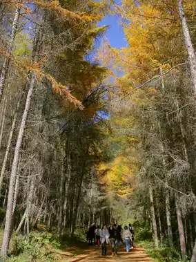 - Symphony of golden pines and colorful forests: Golden pine needles cover the ground, creating a stunning contrast with the vibrant broadleaf forests on the surrounding mountains, offering extremely rich color layers.