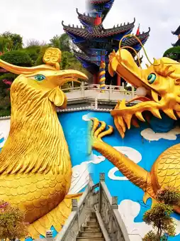 Arhat Hall: The giant dragon and phoenix statues outside the hall are awe-inspiring and magnificent. Inside the hall, hundreds of Buddha statues are enshrined, creating a solemn and respectful atmosphere.