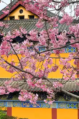 🌸Cherry Blossom Sea: Now March is just in time to catch up with the cherry blossom season, it's so beautiful that there are about 3000 cherry blossoms in the temple, the pink petals gently sway in the breeze, and the antique glazed tiles complement each other,📸 The atmosphere is full ~
