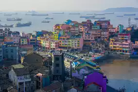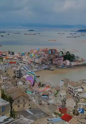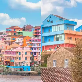 After getting the car, you can go directly to Xiaoruo Village (just navigate to Xiaoruo Village), which is the place known as the "Five Fishing Villages" of the East. It takes about an hour and a half to drive from Taizhou West Station. The road conditions are good and beginners don't have to worry. The buildings here are colorful, like a palette overturned by God. In the afternoon, you can stroll around the small fishing village, eat a bowl of fresh seafood noodles, and sometimes if you are lucky, you can see the local fishing boats coming back to unload the caught fish. At sunset in the evening, climb to the top of Kirin Mountain (the last section is a bit steep, wear comfortable shoes) to watch the beautiful sunset of Xiaoruo Village.