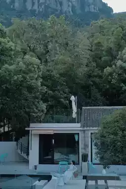 Six standalone stone houses are built along the mountain, blending seamlessly with the surrounding scenery. The public area has an outdoor swimming pool, and each room comes with a private hot spring. Stone paths crisscross between the courtyards, with streams flowing gently, allowing one to feel the rhythm of nature at any time.