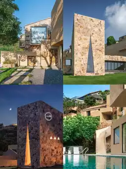 ▫️A group of yellow-brown stone houses built beside the mountain