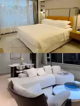 I stayed in a duplex sea view room with a king bed, 60 sqm, two beds, and a huge floor-to-ceiling window
