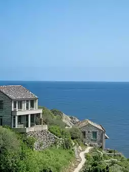 Blue seas + colorful stone houses stacked like an ocean palace π°