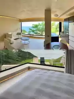Before check-in, they create a group chat, and there is butler service. After arrival, you don’t have to carry your luggage yourself at all, though you still have to unpack by yourself. The first floor is better for taking photos, while the second floor offers a bit more privacy compared to the first. Outside the window, there are mountains and the sea, and the second floor has a large terrace.