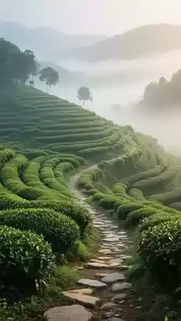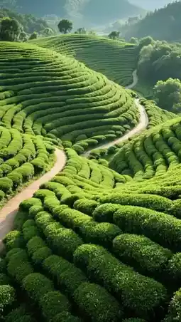 2️⃣ Tea garden corner — tea ridges stretching to the horizon