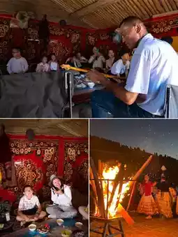✔️Guest at a Kazakh herdsman's home, sit around the bonfire, drink milk tea, and chat