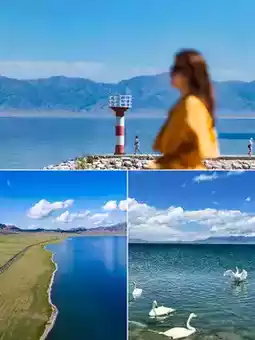 🔹Sayram Lake: The pure blue represents only one ten-thousandth of Sayram's beauty, walk up to the pine trees to overlook Sayram Lake and Guozigou Bridge, a breathtaking view
