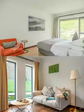 The rooms are standalone wooden villas! Super private! Equipped with full-floor heating and smart toilets! The bedding is extremely comfortable! The highlight is that each room has a private terrace and an extra-large scenic bathtub~ it’s truly a five-star experience! The view outside the window is great! At night, you can lie down and watch the stars~