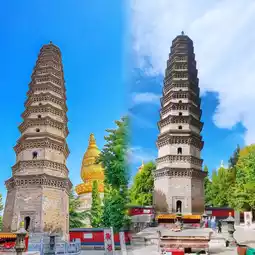 "The first scenic spot in the Northern Dynasty, the first Taoist field in the East" covers more than 600 acres. Here are the golden Buddha of Sakyamuni and the eighteen Arhats of bluestone color sculpture. In the underground palace deep in the pagoda, there are the real Buddha teeth of Sakyamuni, relics, which are very worth seeing.