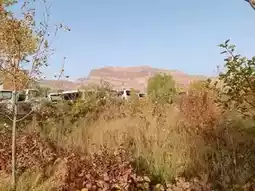 Against the magnificent backdrop of the red bed formations of the Wensu Grand Canyon, the area near the visitor center comes alive with vibrant scenery. Vast fields of wildflowers bloom in a riot of colors, predominantly pink, yellow, and blue, resembling a stunning welcome carpet. Wooden viewing platforms and pavilions are scattered throughout, creating a gentle contrast with the distant red mountains. The oversized "LOVE" art installation, adorned with Chinese elements, adds a modern and lively touch to this floral sea at the edge of the desert, guiding visitors as they embark on their journey to explore the canyon.