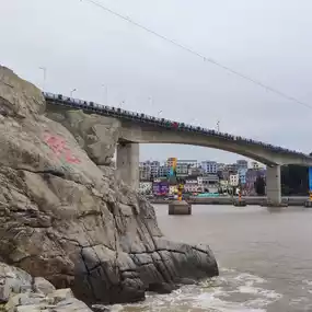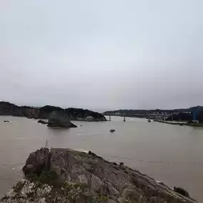 Before the Spring Festival, it's the off-peak season for tourism. There are not many vehicles on the island, and the road is smooth. There are only traffic jams in front of the farmers' market during the shopping peak. The attractions are even more deserted. Dasha Ao and Paotai Mountain are being renovated, and only Xiandie Rock is open (half price for all tickets). There are few cars in the parking lot, and it's very comfortable to stroll around the scenic spots. Facing the sea, overlooking the Banpingshan Bridge, the view is wide and the mood is relaxed. The terrain of the Guanyin Temple section is steep and difficult to walk, but there are few people. After struggling to climb up, you can see the footprints of Guanyin and the golden body stone carvings. Then walk slowly along the slope, and you can see the sea lion and the mountain turtle leaving the scenic area from a distance. There used to be a sea-viewing plank road leading to Paotai Mountain and Dasha Ao, but now it's closed, so I didn't go down.