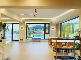 The bar, restaurant, and lobby are interwoven, which not only opens up the space but also adds a sense of mystery. Each window offers a different view. And there's the indoor slide that the kids especially love! They were still reluctant to leave when checking out.