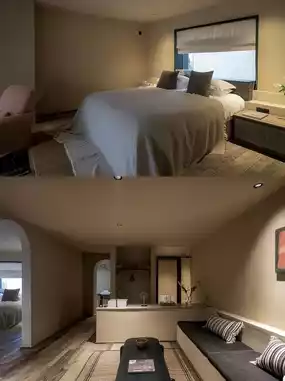 The tall floor height makes the whole room's view much more expansive, providing more areas within the same footprint, with indoor and outdoor usable space reaching fifty to sixty square meters. Moreover, the second-floor area is not cramped at all, the ceiling height is not oppressive, and the entire space is very comfortable.