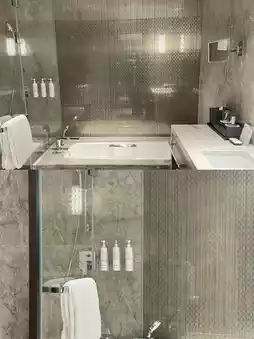 The lobby and lobby bar are very spacious, with high ceilings, a strong sense of space, and very textured colors.