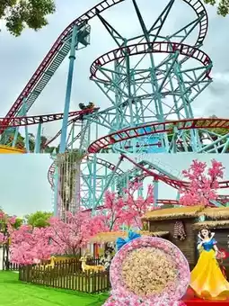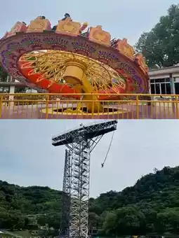 Attractions: Free-fall tower, spinning rides, roller coaster, canyon rapids, merry-go-round, Magic Roundabout, bumper cars, Happy World; Little Seahorse, Battle Shark Island, Little Airplane, Spinning Motorcycles, etc., are all free. Only bungee jumping, Ice & Snow World, and a few other attractions require an additional fee.