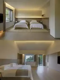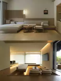 In the hotel's guest rooms, each spacious panoramic floor-to-ceiling window provides an excellent viewing angle for enjoying the beautiful scenery of the three wetlands. There are 27 rooms with different styles, each of which is a quiet and minimalist Zen space. Standing in the large courtyard, you can have a panoramic view of the lake and mountains, and the dense redwood forest is just around the corner.