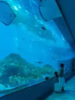 Although the undersea tunnel is not long, the visual effect is very shocking! The light and shadow in the tunnel and the manta rays flying overhead are so dreamy