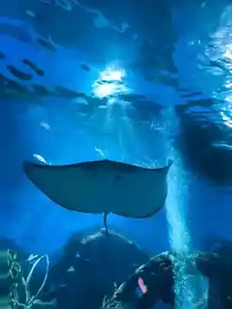 Press the shutter more often to capture the best moments of the stingrays swimming by. Take three horizontal photos for a collage to create a better atmosphere.