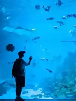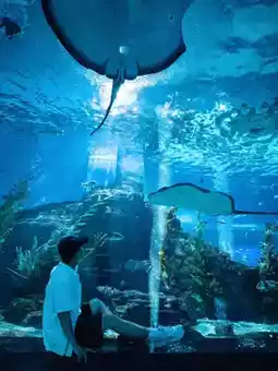 The aquarium's lighting is suitable for silhouette photography. If you want to show your face, remember to bring a fill light.