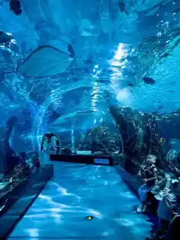 Main photo spots: the underwater tunnel on the first floor, the mermaid theater, and the jellyfish palace on the third floor.