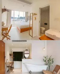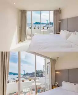 Rooms 201 and 203 on the second floor are sea view rooms with 1.8m king-size beds. Both rooms have bathtubs.