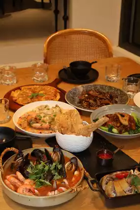 ▪️ Dinner 🍴 I booked a table at Bisan's atmospheric restaurant Shibadao in advance. The tomato seafood pot, flavored eggplant, black truffle foie gras braised pork rice, and other dishes are all delicious. 😋