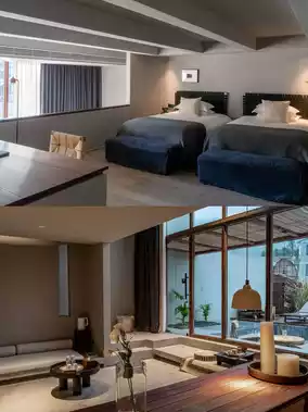 It combines a hotel B&B with the popular MOJ coffee shop. As you enter the door, the entrance to MOJ coffee is on the left and the entrance to the B&B is on the right. The space is quiet, surrounded by mountains, and the air is superb! !