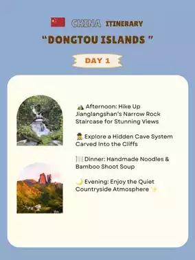 🚗 Drive to Dongtou (~1.5 hrs) & Take a Boat to a Small Island