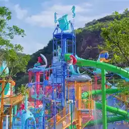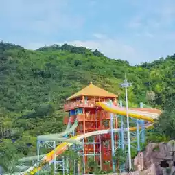 Ferris wheel — spinning cars — harbor lighthouse — carousel — pirate ship — roller coaster — trendy brave ride (prepare your swimsuit in advance)