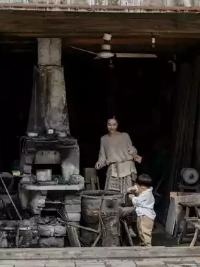 The nostalgic old items in front of wooden doors also caught Chengcheng's attention