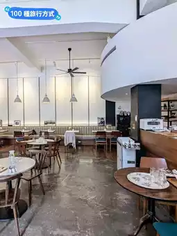 The high-ceiling dining environment is bright and spacious, with large glass windows, an open kitchen, and a pure white space with a slightly light industrial style, making people feel comfortable and relaxed.