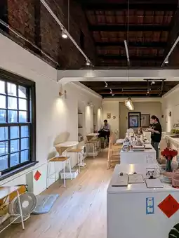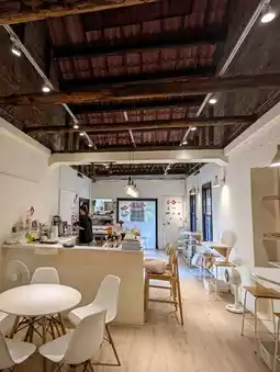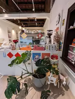 The surprises of Magnolia Coffee don’t end there. When you walk into the store, you’ll be stunned by the scene in front of you. The corrugated ceiling with beamed brick walls is right in front of you. This is such a charming old house!