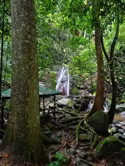 Kipungit Waterfall is located close to Poring Hot Springs, so it is easily accessible. There is a short walking trail of about 400 meters from the hot spring entrance to the waterfall, and this path is not just a simple route, but a precious experience in itself. As I walked along the path created in the forest, the tall trees blocked the sky, and the sunlight pouring through the leaves created a sparkling path. The sounds of birds, insects, and branches rustling while walking along this path felt like quiet music from nature.
