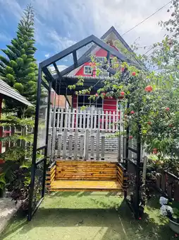 We weren’t planning to stop—but the bright red building at Mesilau Strawberry Farm caught our eye. And I’m glad it did! This place has major cottage-core vibes with mini potted plants, heart-shaped wall art, and even a strawberry-themed swing.