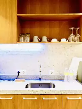 The room is so spacious and so clean. The amenities also complete. In the room, there is Microwave, a complete cutlery, wine glass and many more.