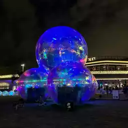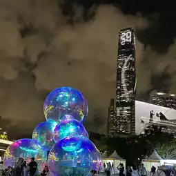 West Kowloon Park always offers excellent installation throughout the year. In March and early April this year, the Kowloon West Fun Festival displays lovely bubbles in the harbor-front lawn of the park. A design studio, Atelier Sisu from Australia, creates the bubbles.