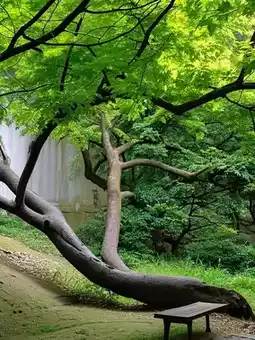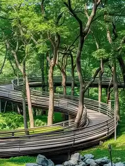 🌿 The S-shaped bridge blends with the greenery, the vitality of maple trees and bridge arches