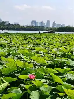 Behind Solitary Hill (Gushan) along the western Bai Causeway, a lone lotus blooms gracefully—a herald of the coming summer spectacle when the ponds will blush pink with flowers.