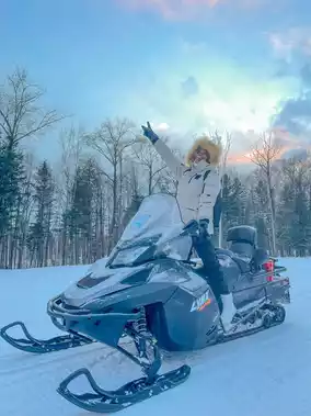 🚗Getting There- Free transport (pick up and drop off) 🚌is available for everyone staying in Wanda International Resort. Otherwise, You would have to drive yourself to the office, which is right next to the bridge, a few meters away from the main gate. I was first picked up by car from the hotel to the office and then with a snowmobile from the office to the igloo. The ride to the igloos was amazing. It was like riding through the a snow maze in the bushes🌳. The rider was kind enough to stop on the open field to take some quick shots.