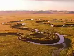 Jiǔqū Bay is located east of Ulagai Lake, connected to the lake's entrance. It lies in a low mountain and hill area and is a winding section of the Ulagai River. The river here twists and turns like a green ribbon swaying among the grass under the gentle breeze. On both sides of the riverbed grow abundant reeds and other aquatic plants. Under the bright sunshine, herds of cattle and sheep graze, with blue skies and white clouds forming a natural grassland painting before your eyes, truly like "walking in a painting."