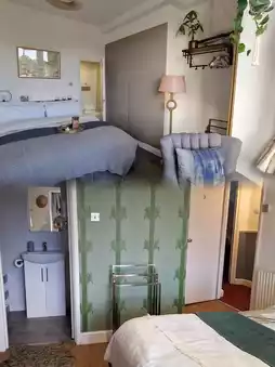 After checking in, the room's layout is truly impressive. The oversized floor-to-ceiling windows seamlessly connect us to the sea, allowing us to admire the rippling blue waves outside.