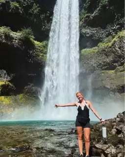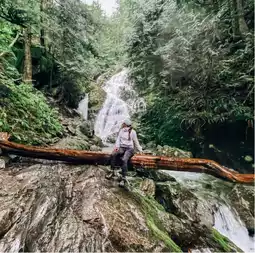 Norvan Falls is located in the lush forest of the Lynn River Source Area Park, suitable for any time of the year. There is a beautiful pool at the bottom of the waterfall where you can go down and play in the water.