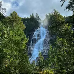 It is a towering waterfall that can be seen along the Sea-to-Sky Highway and is one of Squamish's most famous features. There is a small path with wooden stairs that leads to the forest, and after climbing a few more stairs, you can view the waterfall from a different angle.