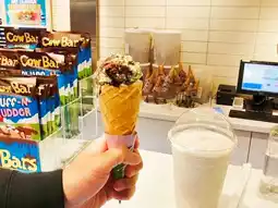One incredibly popular ice cream shop is Cows Ice Cream 🍦 🍨. The long line immediately caught our attention. 🤣 There's a cute cow at the entrance, along with a list of popular ice cream flavors for those waiting in line to choose from. They also sell milkshakes. ❗My husband ordered his favorite mint chocolate, and I opted for a strawberry milkshake. 🥤 It was quite good! ❗