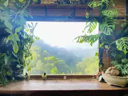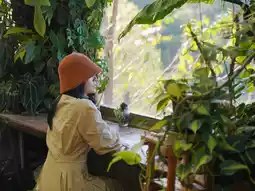 A lovely coffee shop nestled amidst the valleys of Ha Do Bi, Ban Lao Wu. The shop is a wooden roadside house decorated with a variety of plants in every corner, creating an atmosphere like something straight out of a fairy tale. It was truly healing for us. Another highlight is the large windows, which offer breathtaking mountain views that look like they're drawn to a real painting. Inside, there's a souvenir shop selling local souvenirs. There are several seating areas, or you can sit outside in front of the shop. There's also an auntie selling fragrant roasted sweet potatoes.