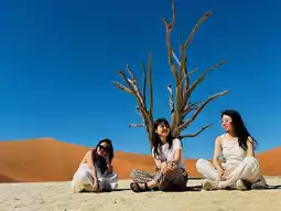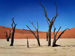 The contrast between the blue sky and the sand dunes, the dead trees and the white ground is so beautiful🥹✨