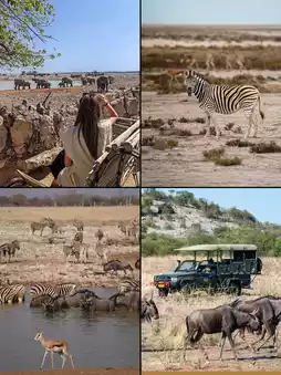 ✅ Self-drive safari in Etosha: Watch wildebeests, elephants, and giraffes gather at waterholes.
