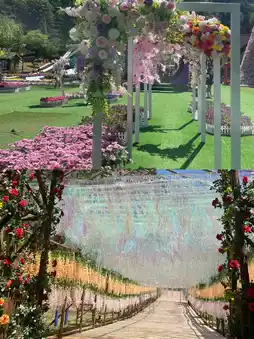 A faithful recreation of France's Giverny! The retro cottage by the water lily pond, the giant "A Thousand Miles of Rivers and Mountains" rock wall, the flower arches... Remember to bring a straw hat/drawing board as props to instantly create the atmosphere of "Monet on the run."
