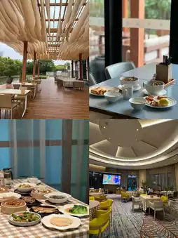 After taking a bath in the hot spring, come to the hotel tea restaurant for dinner. The environment is very good, with projection, various stir-fried dishes, Cantonese snacks, and coconut chicken